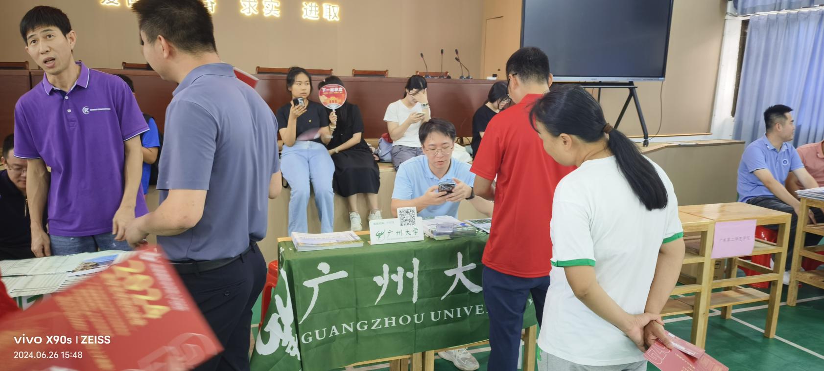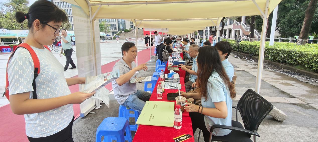 6月27日,专业教师庞玥老师、辅导员苏展勇老师参加了广州高招会琶洲专场。老师们根据考生的分数排位为家长和考生进行了个性化咨询服务,以“冲、稳、保”的原则指导考生选择心仪专业,解答了关于学校的转专业政策、校区设置、就业情况、宿舍环境等家长和考生们普遍关心的问题。累计发放学校招生宣传册1500余份,接待考生及家长累计1500余位。
