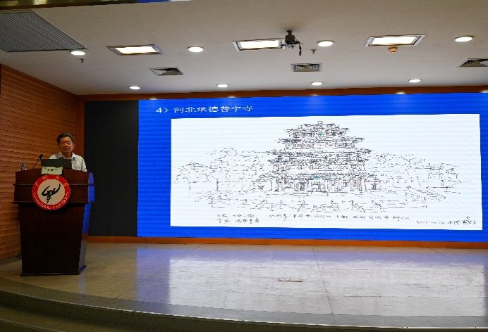 汤教授在授课过程中,通过宝贵的影像视频向新生们展示了自己参与主持过的各类项目,从番禺沙湾镇留耕堂到天津独乐寺,从香港景贤里到广州中山纪念堂。汤教授通过自己的专业知识和人生经验,不仅向新生同学们传递着对古建筑的理解和尊重,同时也希望让新生们看到保护和传承文化遗产背后的工作,加深对传统文化的认同感和责任感。其中汤教授还展示了自己在工作时所绘制的草图,一笔一画间尽显专业功底,黑白线条中流淌着匠心精神。