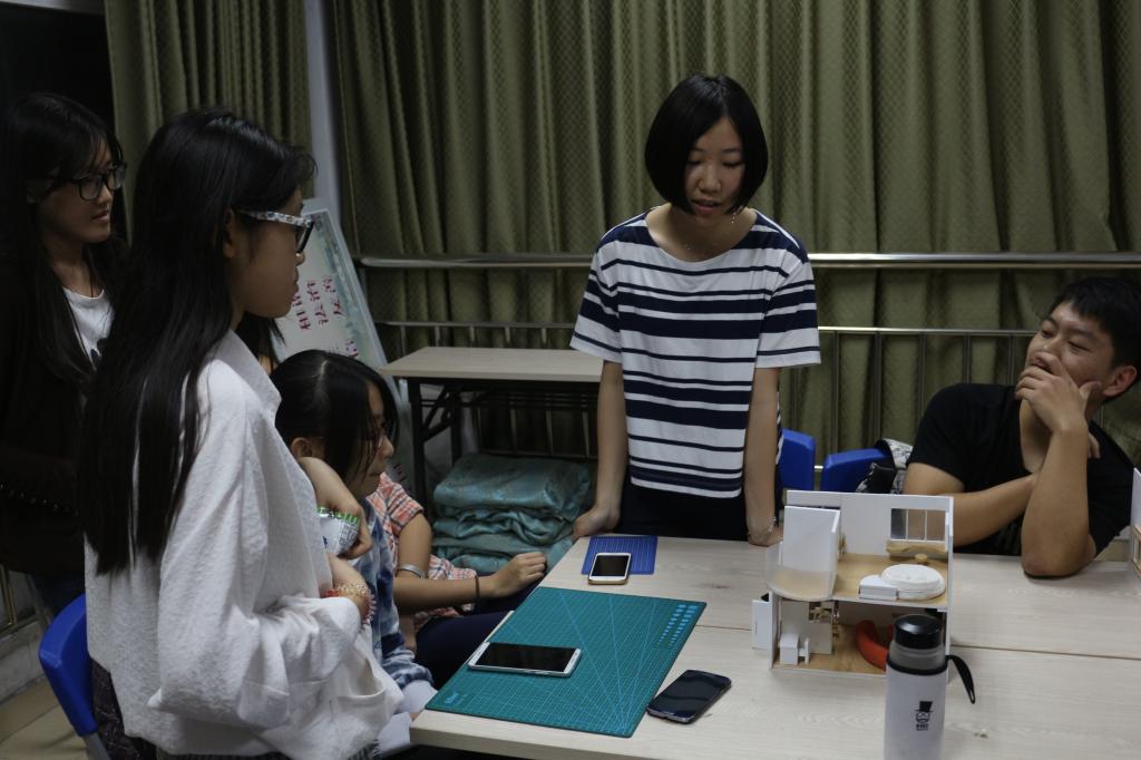 本次活动邀请了园林142的钟建珠同学,与师弟师妹们分享她制作家具模型的经验。活动一开始,师姐先拿出一些优秀的模型展示给大家看,介绍它们的优点和不足,并向同学们传授自己的经验,讲解在制作家具模型过程中要注意的一些地方。在这个过程中,现场的同学也积极提问,气氛十分活跃。通过本次“五站一室”的活动,同学们从中学到了很多关于模型制作的知识,并表示将其应用到自己未来的模型制作中。