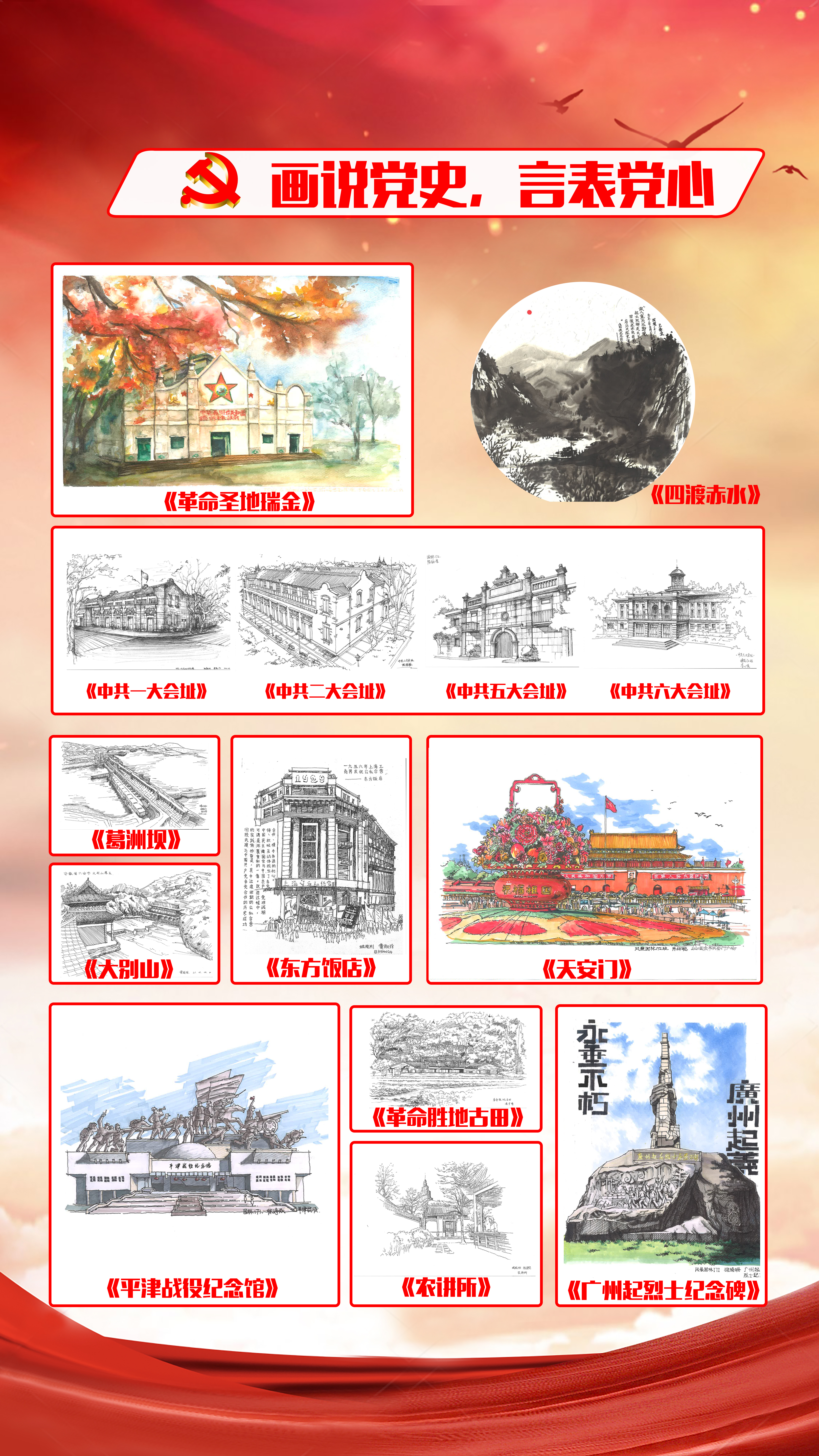 建院学生党支部推出活动至今,建院学子热情高涨,积极参与,绘出许多优秀作品。自6月22日起,将每天为大家展示一幅学生绘画作品,讲述一个党史故事或一段党的历史,尽请期待。