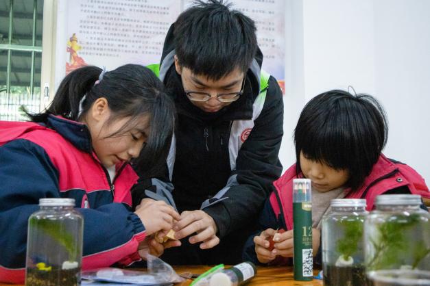 活动的过程中,科普队伍带领当地小朋友一起亲手制作生态瓶,并向当地小朋友普及一些简单的生态系统相关知识;另一只科普队伍带来鲁班锁的现场体验,同时还有红色历史建筑的搭建,在讲解建筑结构与人文历史的时候进行实践,这种做中学的方式让小朋友们在实践中感受到古人智慧的魅力,感受到建筑的魅力,传承红色文化。