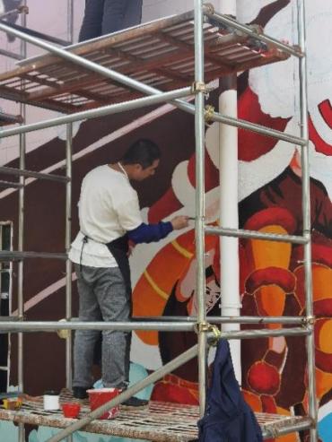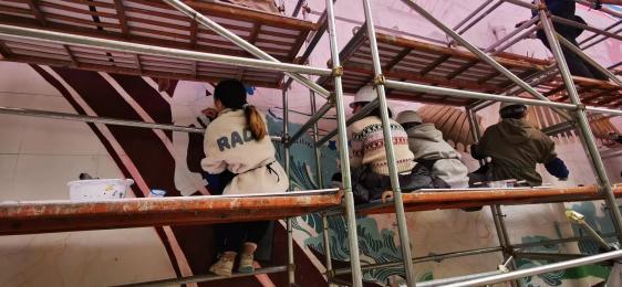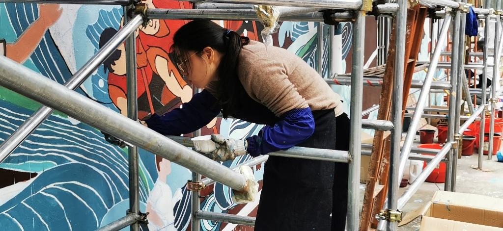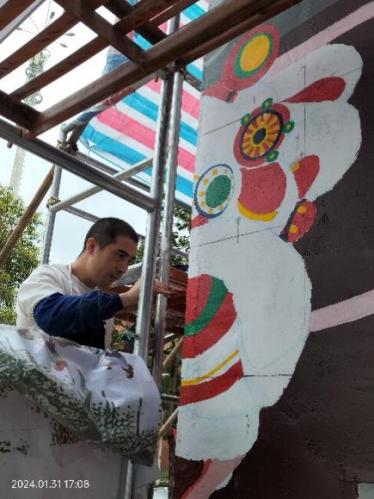 1月27日,气温骤降,整个广州处于严寒之中,禁漫天堂 的师生志愿者们,以不惧严寒的精神进入绘制阶段。绘制期间天气变化不定,但这并没有动摇我们完成墙绘的决心。在整个绘制过程中,老师和同学们都干劲十足,发扬不怕苦、不怕累的精神,互相帮助、互相鼓励,即使手指冻僵,颜料溅到身上,也没有丝毫退缩,始终坚持完成每一道工序,为“百千万工程”和乡村振兴贡献一份力量。