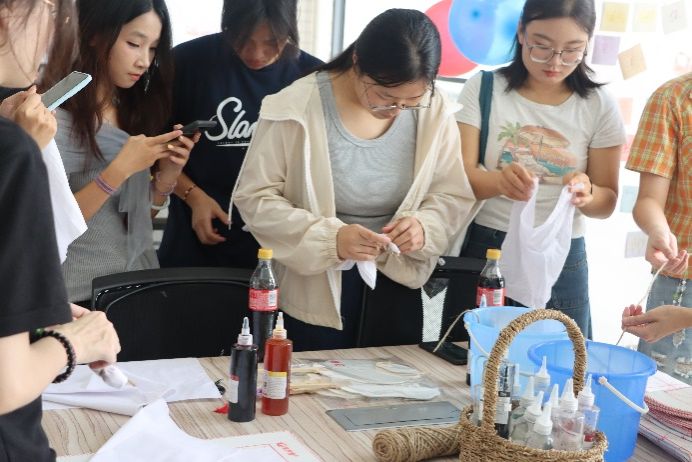 亲手体验非遗扎染技艺,让情感在指尖绽放。一布、一绳、三色染,通过巧思与匠心的捆扎,看色彩在方寸白布上自由晕染、渗透交融,幻化出独一无二的绚丽图案。这不仅是技艺的体验,更是情感的寄托——在淡彩流动中,“染”出我们对家国最真挚、最斑斓的热爱!