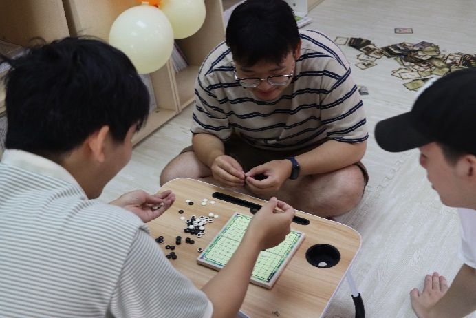 在浓厚的爱国情怀与艺术创作之后,活动的氛围转向了轻松与欢快。意犹未尽的同学们开启了自由联谊环节,将会场变成青春飞扬的欢乐海洋。有同学一展歌喉,唱起流行的旋律;更有同学随兴起舞,灵动的舞步赢得阵阵掌声;桌游区充满了智慧的碰撞与策略的交锋,欢声笑语不绝;另一侧,踢毽子的同学们身手矫健,彩色的毽子在空中划出优美的弧线