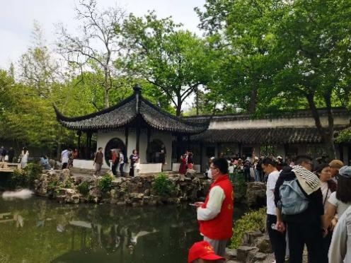 园内游人如织,热闹非凡,但这种“热闹”是否应该出现在园内?邓老师谈及,古典园林最初作为私人宅邸,在设计之初并未考虑承载大量人流,如今要容纳如此众多的游客,实则勉为其难。据园林工作人员透露,当天游客数量仅为平日的三分之一 ,而即便如此,园林已然为当地带来了可观的经济效益,不禁让人感叹,我们享受着前人留下的珍贵遗产。