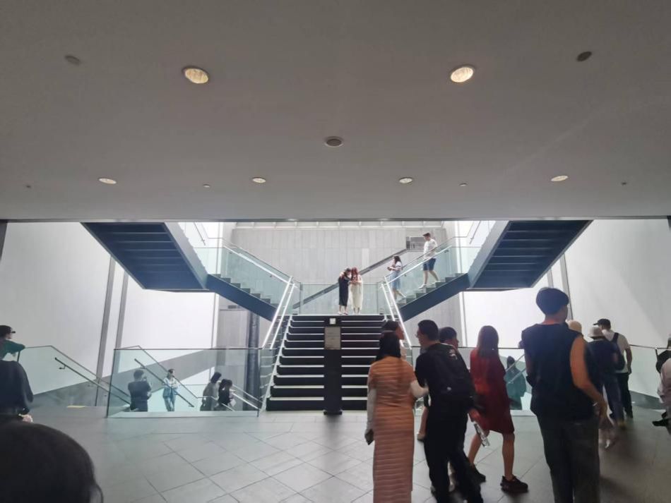 此外,为满足游客观赏文物的舒适度,展厅的顶部侧向采光使展厅内光线柔和,木纹式样的外墙使展厅空间氛围宁静淡雅。我们在欣赏苏博建筑之美的同时,与邓老师畅谈游览感想与展品风貌。