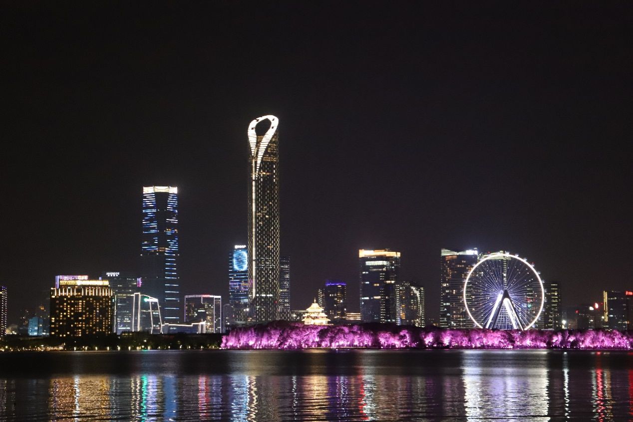 傍晚时分,访学团队来到了金鸡湖滨水景观带调研。湖边微风拂面,师生漫步在景观带上,感受着苏州这座城市的独特韵味与魅力。天色渐暗,岸边华灯初上,城市的脉搏在我们的见证下又跳动了一次。