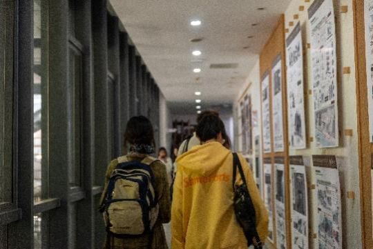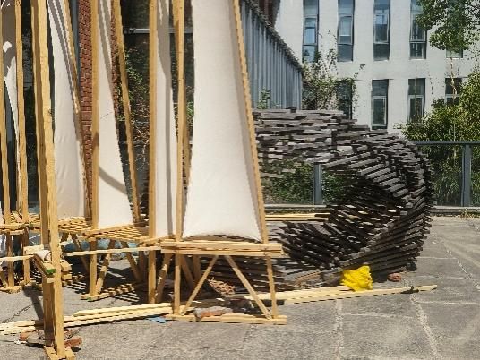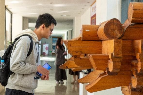 抵达苏州大学后,团队调研了“苏州大学金螳螂建筑学院“,与学院老师、学生进行交流,金螳螂建筑学院的展厅内陈列学生设计的木构作品,如传统榫卯斗拱,以及学生们的优秀课程设计。
