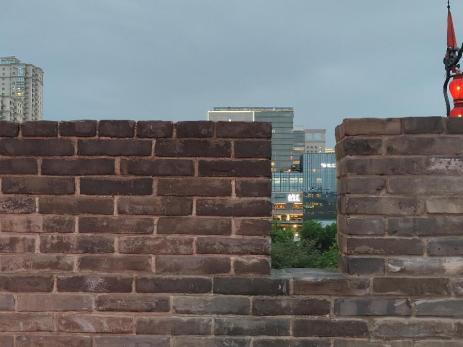 “西安城墙始建于明朝,采用黄土夯筑,城墙不仅有厚重的墙体,还有女墙、雉堞、护城河、吊桥、敌楼、角楼、箭楼等完整的军事防御设施,形成了一个牢固立体的防御体系。建筑规模在中国古代城垣中首屈一指。”席老师如是说道。
