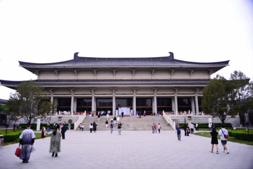 陕西历史博物馆位于西安大雁塔西北侧,建筑颇有唐朝风韵。吸取了唐代建筑的雄浑博大,借鉴了中国传统宫殿“轴线对称,主从有序,中央殿堂,四隅崇楼”的结构特点,陕西历史博物馆典雅凝重,古朴大方,既体现了民族传统,又极具地方特色。