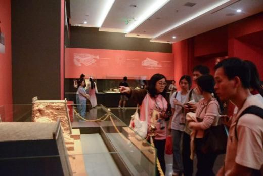 在参观过程中,广大建筑系教师席明波老师按展厅顺序,为访学团成员详细介绍了自仰韶文化以来中国建筑文明和建筑技术的发展和进步,同时带领大家亲身体验展厅空间,讲解了展厅建筑的设计方法。