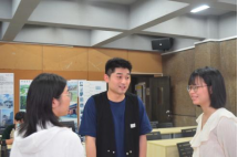 (徐浩森老师与我院熊一唱老师、主席团成员赖科凤同学交流)
