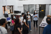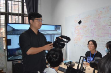 来到建筑媒介实验室,许昊皓老师为我们讲解了实验室里面的常用器械和技术。建筑媒介实验室是一个掌握虚拟仿真技术的实时共享平台,是黑科技媒介技术核心。同学们都纷纷被炫酷的VR、AR装置和影像呈现技术深深吸引。