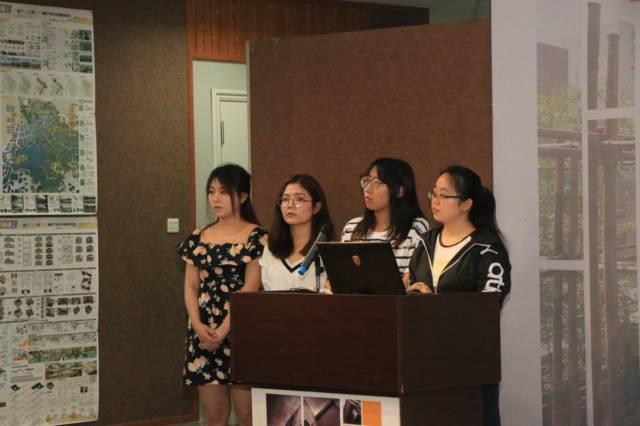 最后,我院黄庭月小组以小品形式串起整个汇报,用直白的语言阐述他们“碧水桃源”的方案,让观众耳目一新。但是评委老师点评褒贬不一,专业性层面、逻辑表达欠佳;同时指出细部设计有所不足。