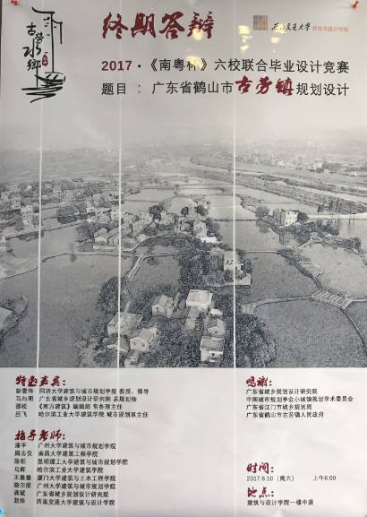 本次毕业设计竞赛主题是广东省鹤山市古劳镇规划设计,体现古劳水乡的古韵。六校参赛学生历经三个多月的研究设计成果展现在我们眼前时,感概到工作量之大、数据分析之多,同时各小组的关注点各有千秋,小组成果展现形式新颖。我们一起来回顾一下精彩的赛况吧!