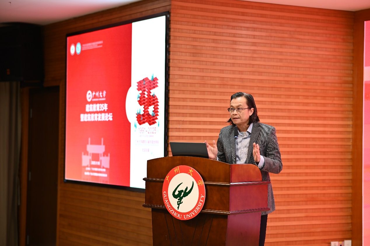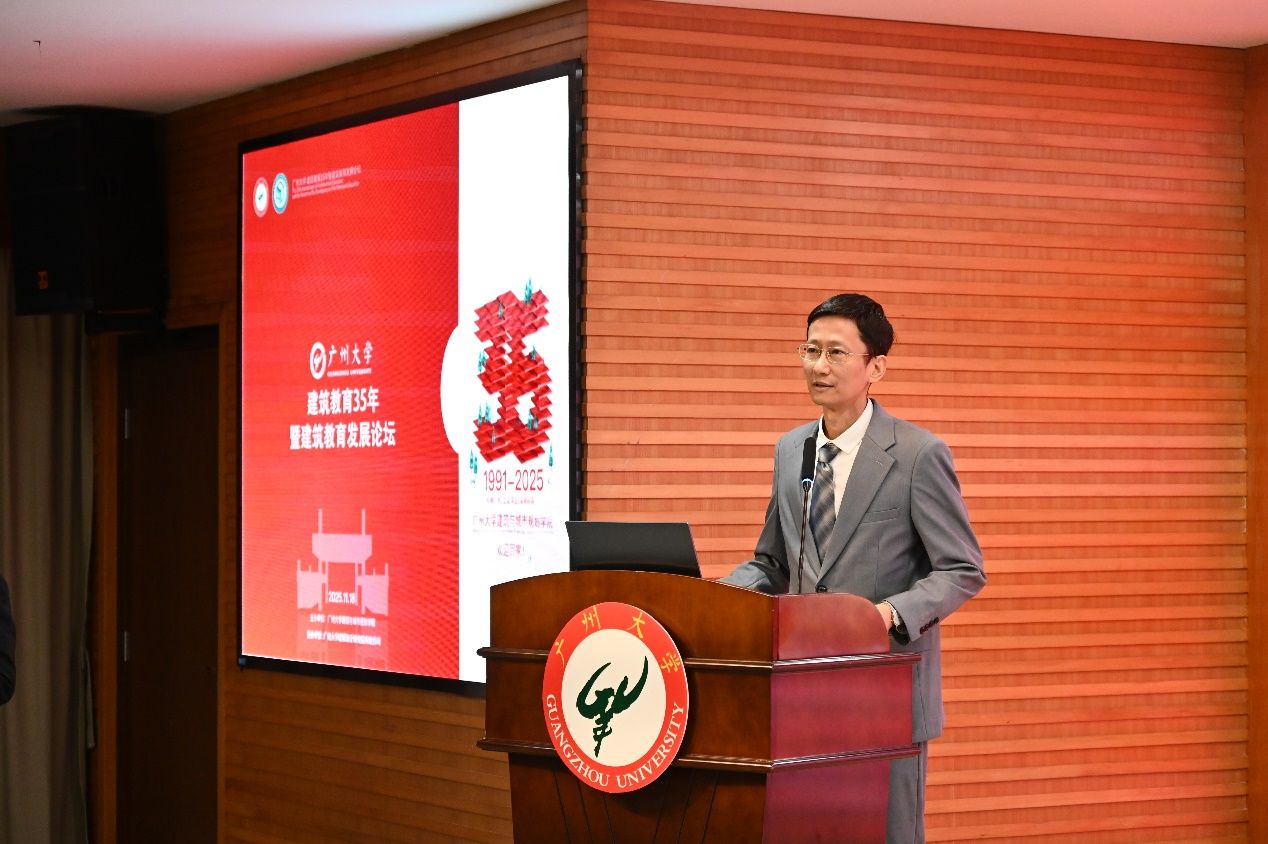 华南理工大学建筑学院副院长苏平教授代表兄弟院校送上了最诚挚的祝福。他说道:“华工与广大地缘相近、人缘相亲、学缘相通。35年来,广大建院取得了令人钦佩的成就,这凝聚了几代建筑人的智慧与心血。”
