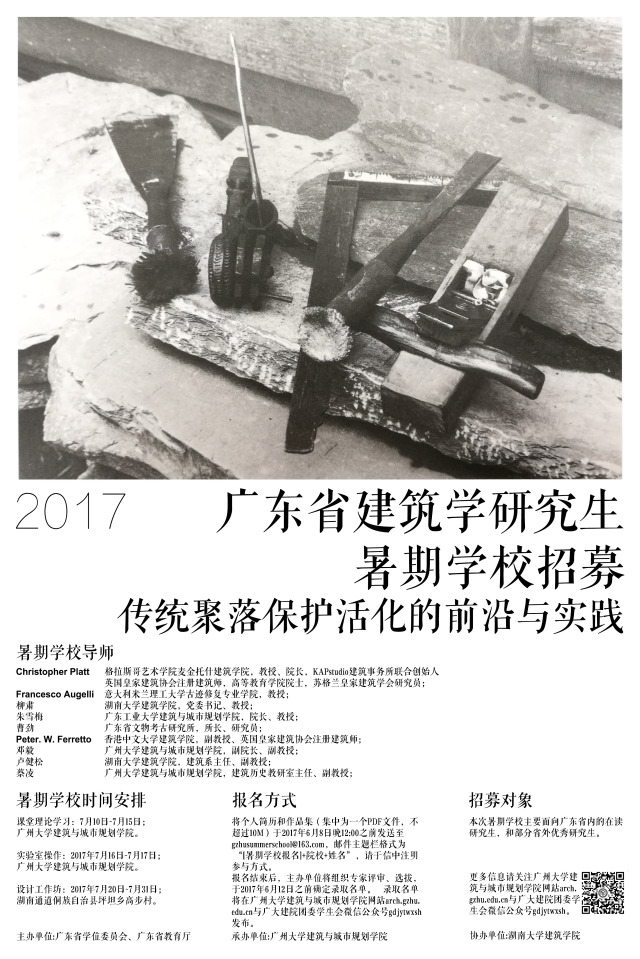 暑期学校由三个阶段的学习内容组成,分别为课堂理论学习(以专家专题讲座形式开展);实验室营造技巧实训和现场设计工作坊这三个循序渐进的教学与实践环节。传统聚落保护的理论与方法学习有助于加强参与者对该领域基本理论与研究方法的认识;实地实操训练则可提高参与者的设计实践能力。