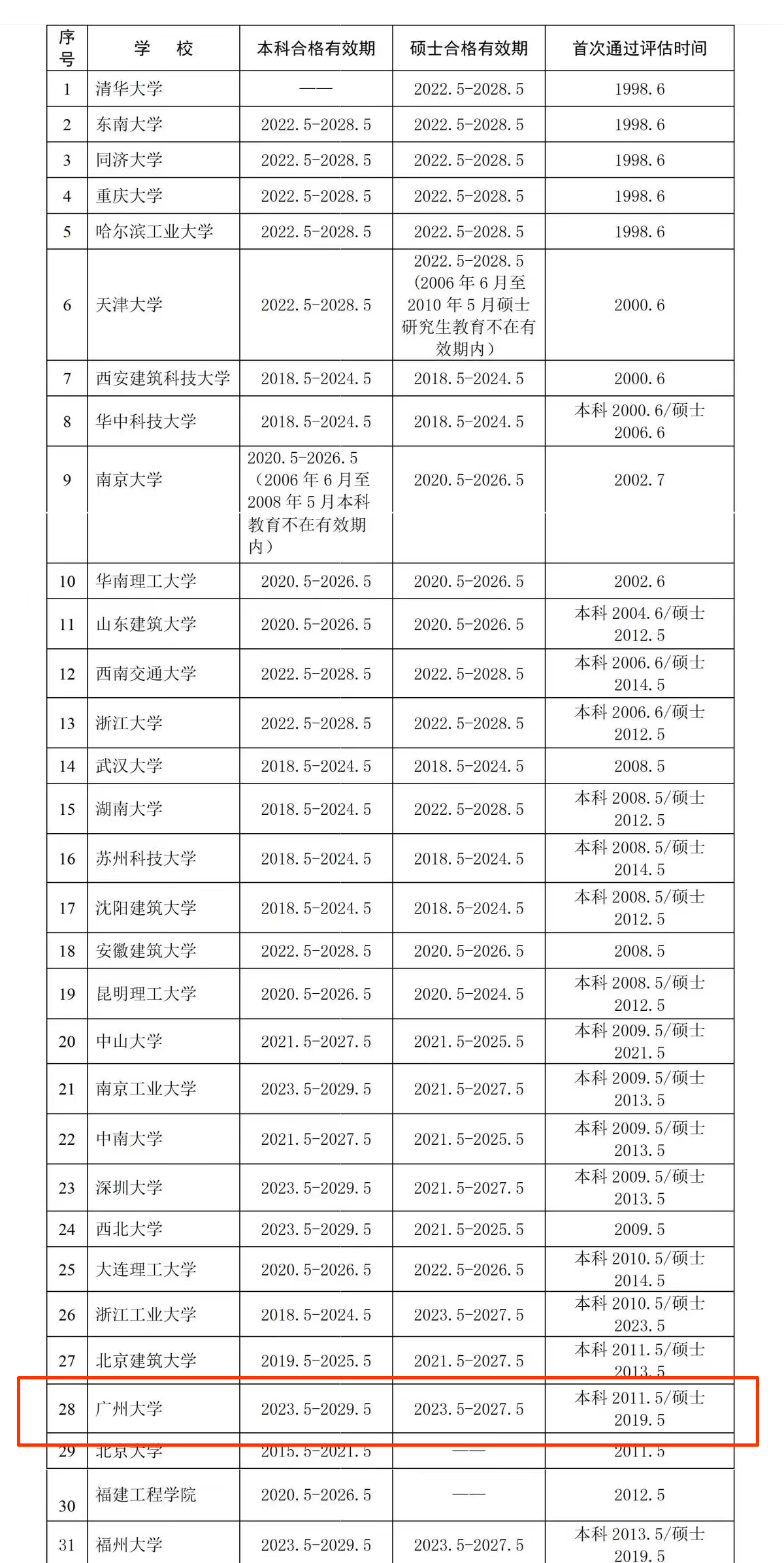 2023年度城乡规划专业评估通过院校一览表(部分)