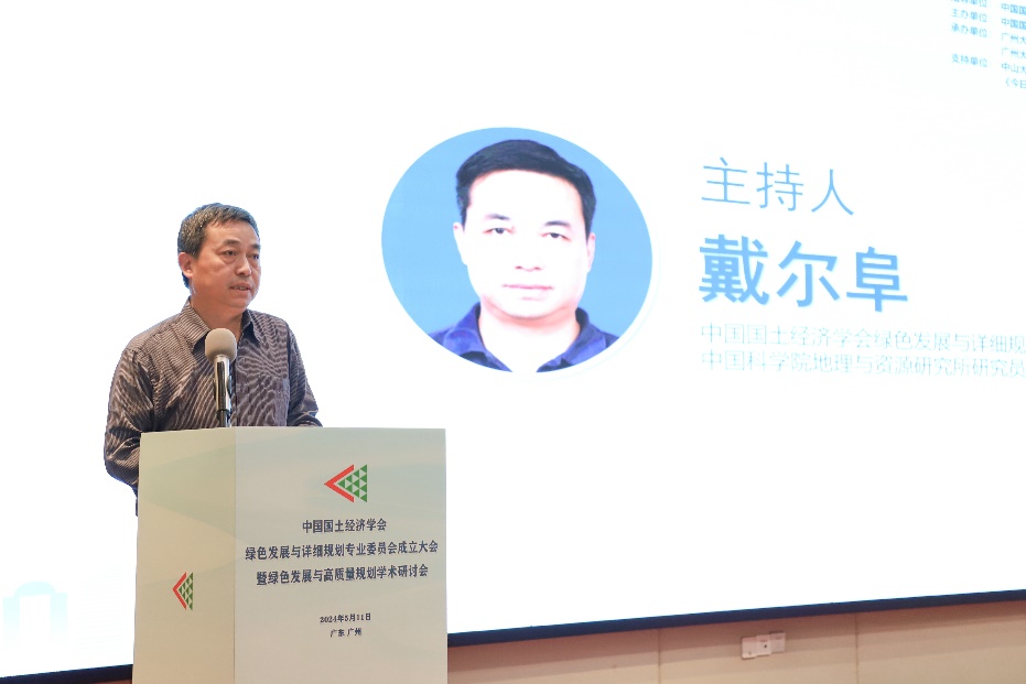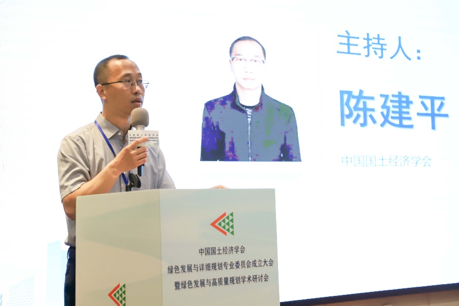 中国国土经济学会陈建平主持中国国土经济学会绿色发展与详细规划专业委员会成立大会。