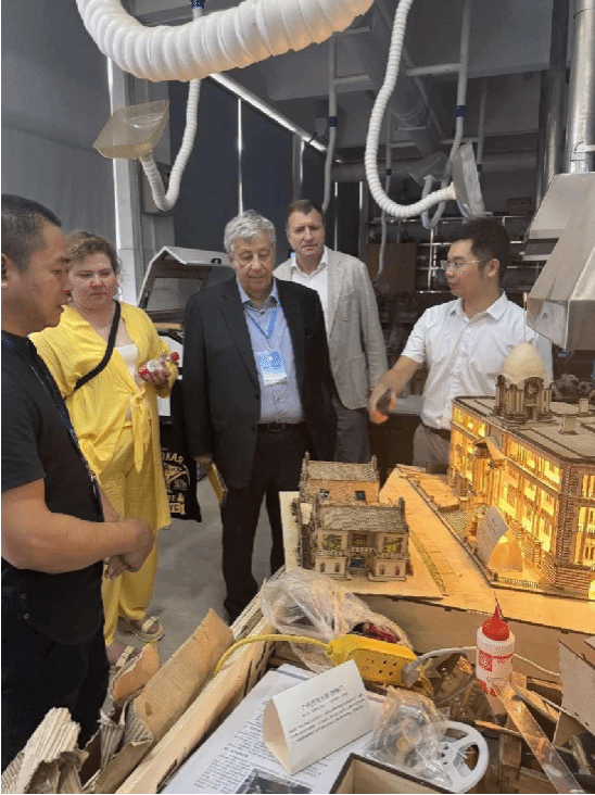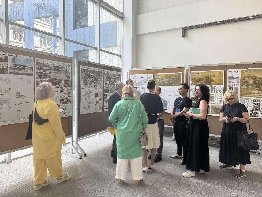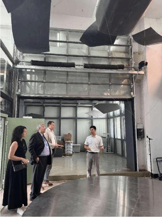 座谈会后,赵阳副院长、陈锦棠副院长陪同外宾参观学生作品展陈以及“实体-虚拟仿真”模型室、全天候气候模拟实验舱、声振一体实验室、建筑光学-星空景观实验室等实验室和科研设施。
