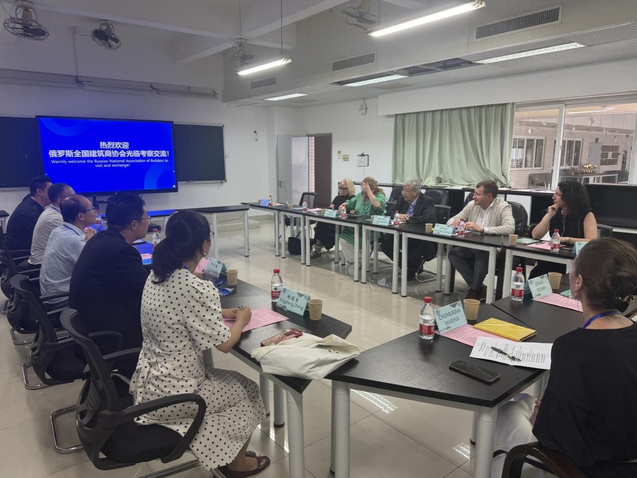 座谈会上,李建军院长代表学院欢迎俄罗斯客人来访,李泓昊副教授向外宾介绍学院历史沿革、人才培养和办学发展、科研合作等情况。切尔涅茨基副主席感谢学院的热情接待,介绍了俄罗斯全国建筑商协会的情况,并表达了积极促成中俄高等院校交流合作的意愿。