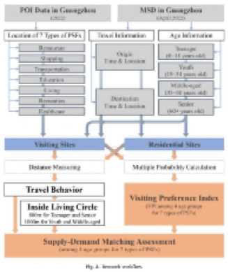 2025年5月,我院教师陈锦棠带领城乡高质量发展协调创新中心研究团队,在《Habitat International》(SSCI,中科院一区)发表题为“Supply-demand matching assessment of public services facility among age groups from the perspective of travel behavior”的研究论文(ELSEVIER首发)。本研究基于2022年的手机信令数据,深入分析了广州市主城区内四个年龄段居民的实际出行行为,引入“访问偏好指数”(VPI)这一指标,量化4个年龄组对7类公共服务设施的需求偏好差异,并评估居民在其传统生活圈范围内的需求满足程度,通过对比设施的空间分布与VPI,评估供需匹配情况。研究旨在为以人为本的设施差异化配置提供科学依据,助力超大城市公共服务能力提升和可持续发展。