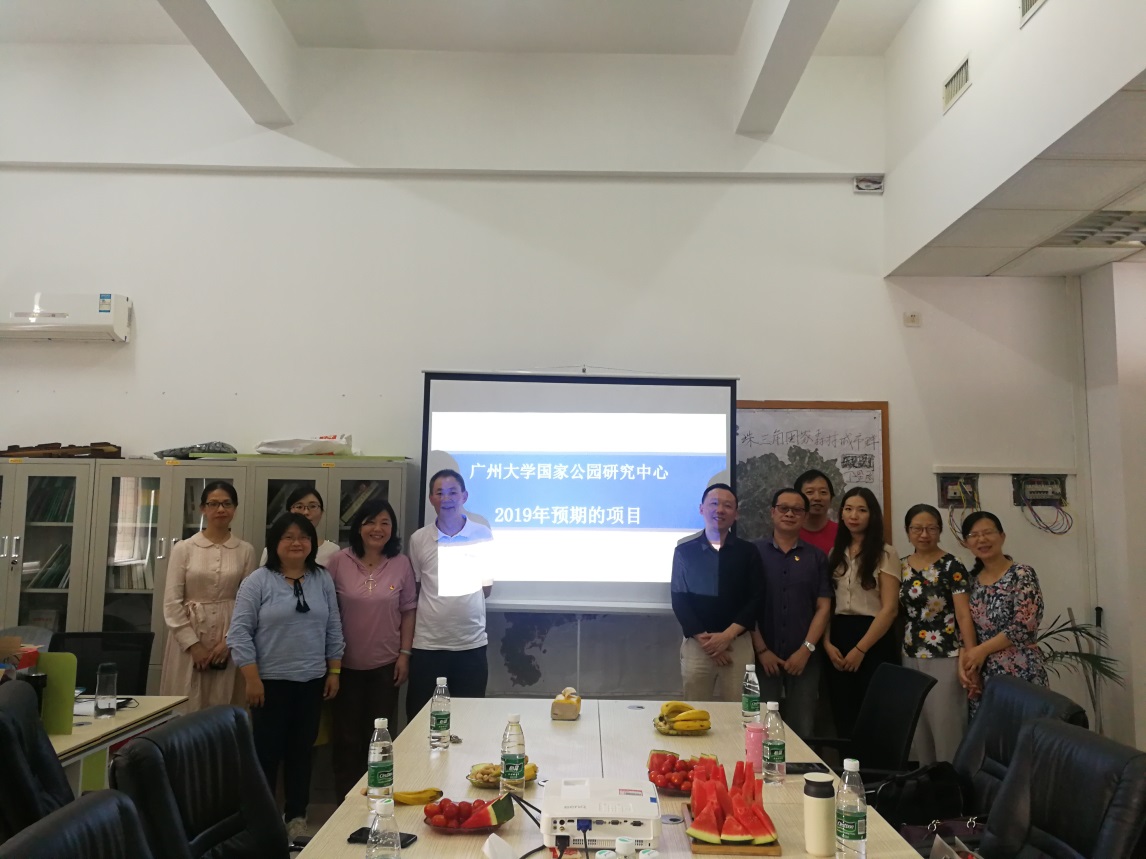 On April 23, 2019, the National Park Research Center of Guangzhou University held a listing ceremony for the research center in Room 519, Engineering Experiment South Building. Landscape Architecture Leader Professor Huang Jinling, Director of the Research Center Professor Deng Yi, Deputy Directors Deng Xiaofei, Li Xilin and teachers of the research center attended the ceremony and discussed the work plan for 2019.