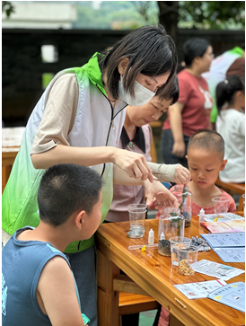 科普融入乡村:结合学院自身专业优势和专业特色,学院党员志愿者开展乡村志愿科普行,吸引了40多名乐干村的孩子积极参与活动。学院党员志愿者引导孩子通过植物认知、微景观生态瓶制作,进一步激发孩子们对生态系统相关科学知识的好奇心,现场气氛十分热烈,全面助力乡村生态振兴。