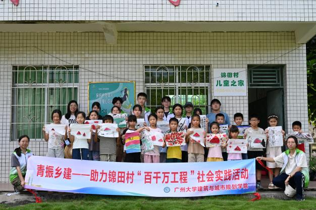 党委副书记周世慧老师、许志强老师、全体学工办老师带队,组织实践团34名本硕学生,奔赴清远市英德市英红镇锦田村,开展以“青振乡建、手绘乡村”为主题的暑期“三下乡”社会实践活动,从7月6日至10日,共历时5天。本次活动构建了"1+4"的实践体系,以墙绘艺术为桥梁,开展了包括艺术教育反哺、劳动教育树德、传承红色基因、资助政策下乡的四大板块特色活动。