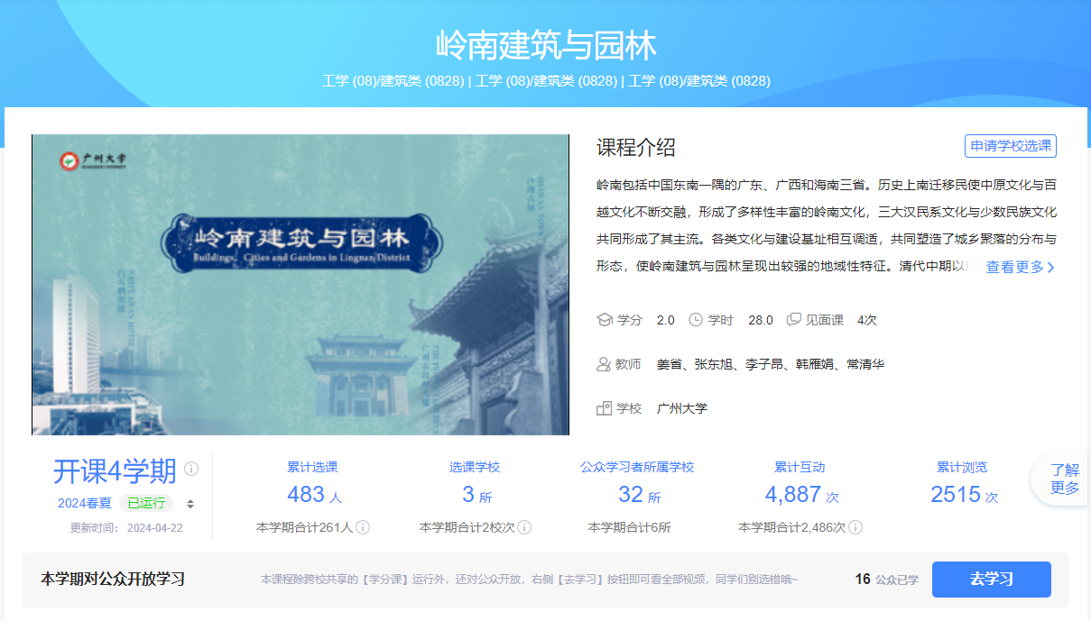 课程团队有志于引导同学、同好一起理解岭南文化特质,了解岭南建筑与园林。热忱欢迎大家以多种形式参加学习!