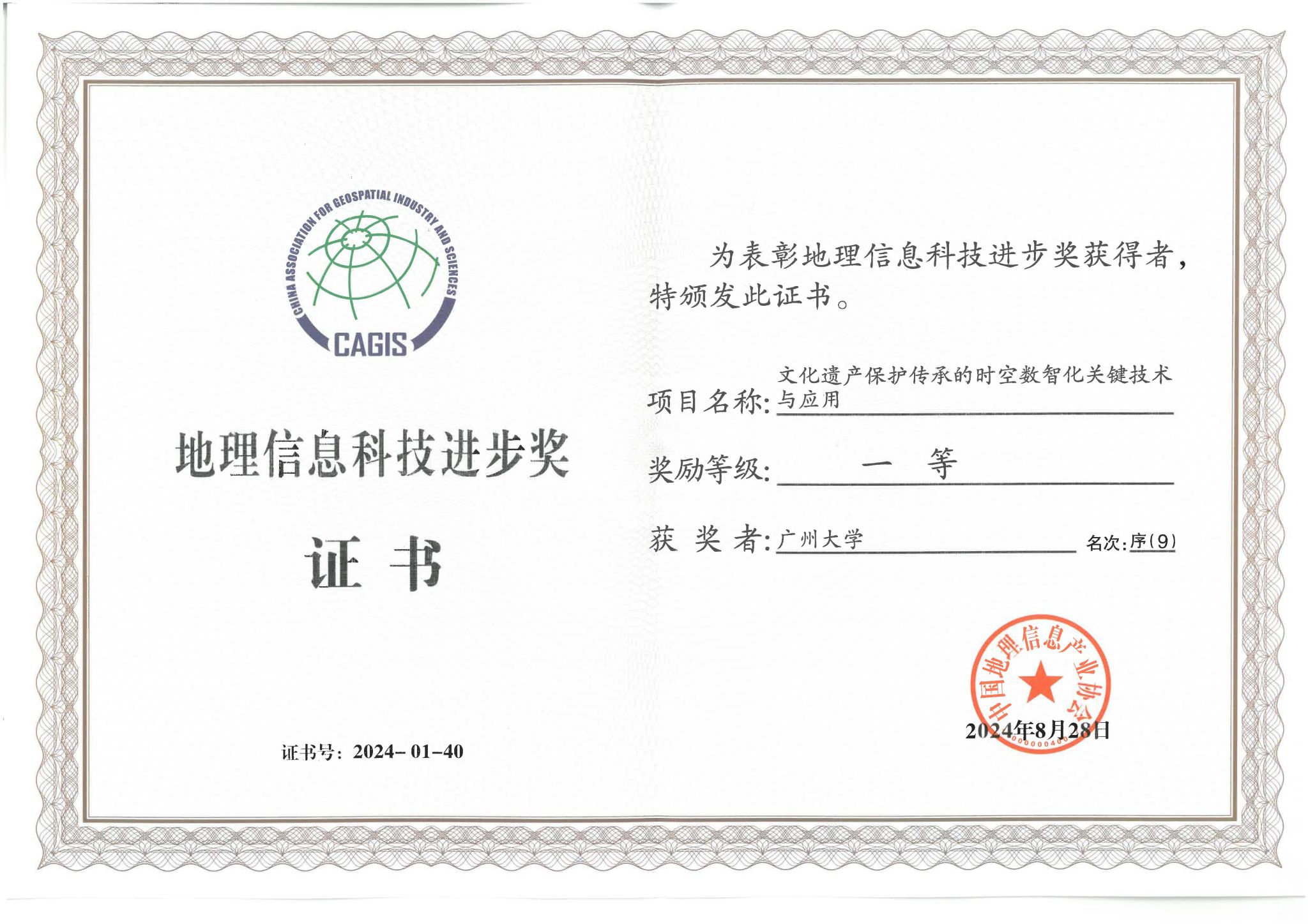 禁漫天堂 团队参与香港大学叶嘉安院士团队和广州欧科牵头的科研项目《文化遗产保护传承的时空数智化关键技术与应用》,近期该项目获得2024地理信息科技进步奖一等奖。地理信息科技进步奖经科学技术部、国家科学技术奖励工作办公室批准设立,由中国地理信息产业协会评选,是我国地理信息领域最高科技成果奖项之一。
