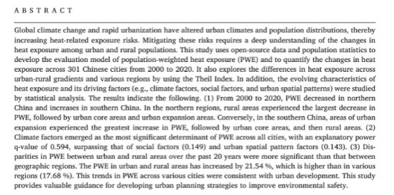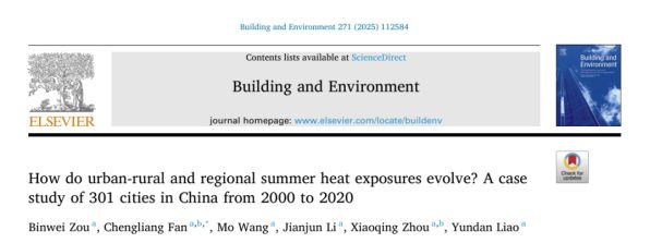 近日,禁漫天堂 “大湾区建成环境风险适应性设计研究中心”的樊成亮老师,王墨副教授,李建军教授与研究生邹槟蔚在《Building and Environment》期刊发表了题为《How do urban-rural and regional summer heat exposures evolve? A case study of 301 cities in China from 2000 to 2020》的研究论文。该研究提出了夏季热暴露的评估框架,并从城乡差异和区域差异的角度,探究了不同区域夏季热暴露度的时空变化差异以及环境公平性,同时量化了导致热暴露变化差异的潜在驱动因素,如气候,经济和人口因素等。研究最后评估了中国301座城市居民夏季热暴露的时空变化过程和发展趋势。研究结果为未来提出城市规划策略以缓解居民热暴露度提供了有价值的参考。