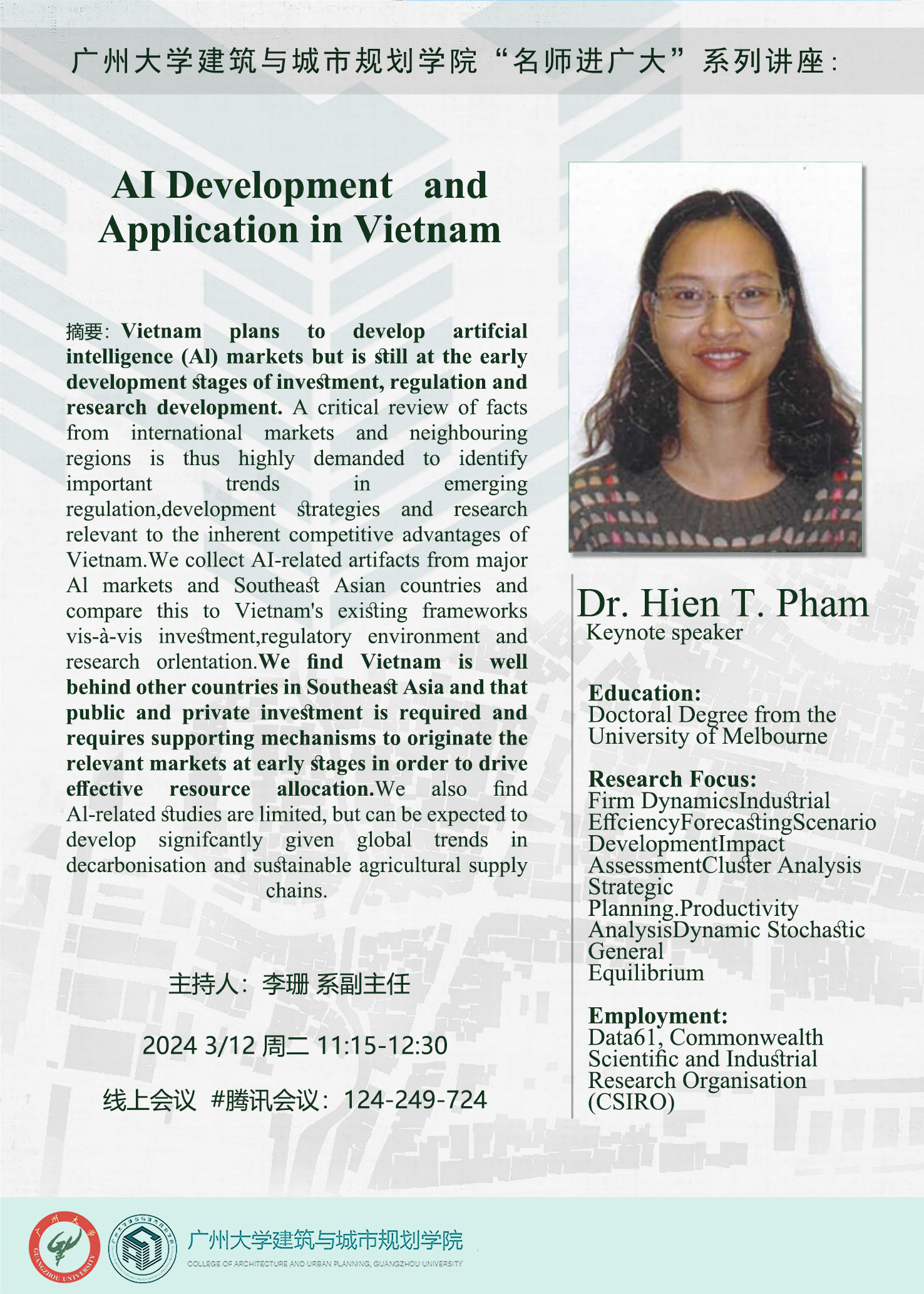 主讲人:Dr. Hien T. Pham;