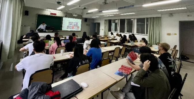 在讲座开始前,人力资源管理师先分发了企业宣传折页给学生。讲座开始时,管理师进行了禁漫天堂以及2024年应届生岗位的介绍,接着讲解了广州华森的公司现状,包括公司奖项、公司福利、文娱活动、晋升途径等。
